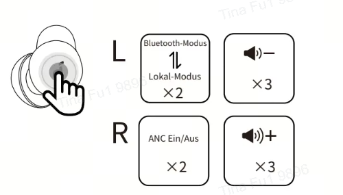 Modus wechseln: Zwei Mal auf den linken Earbud tippen wechselt zwischen Bluetooth- und Lokalmodus.