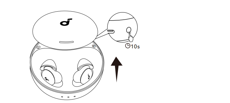 Lege die Earbuds ins Case, Deckel bleibt offen.