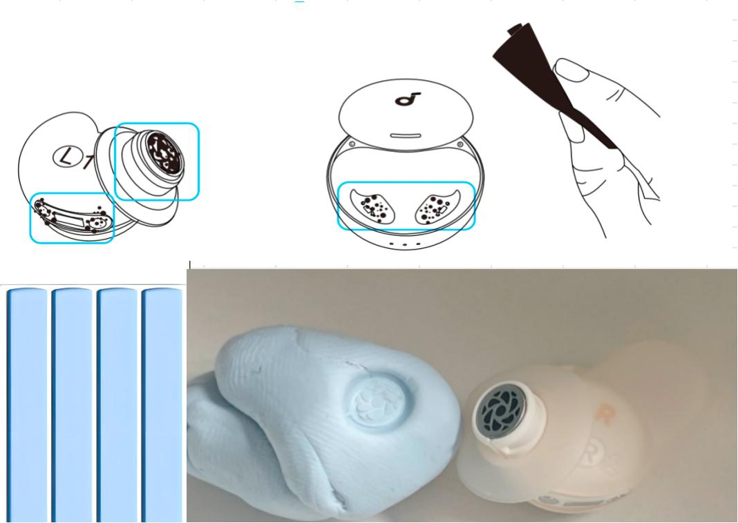 Um die beste Klangqualität zu erhalten, solltest du regelmäßig den auf den Kopfhörern angesammelten Staub oder Ohrenschmalz entfernen. Verwende dafür ein leicht mit Alkohol befeuchtetes Wattestäbchen, um das Metallgitter unter den Silikonaufsätzen vorsichtig zu reinigen, oder benutze Blu-Tack, um Rückstände aus den Gitterlöchern herauszuziehen.